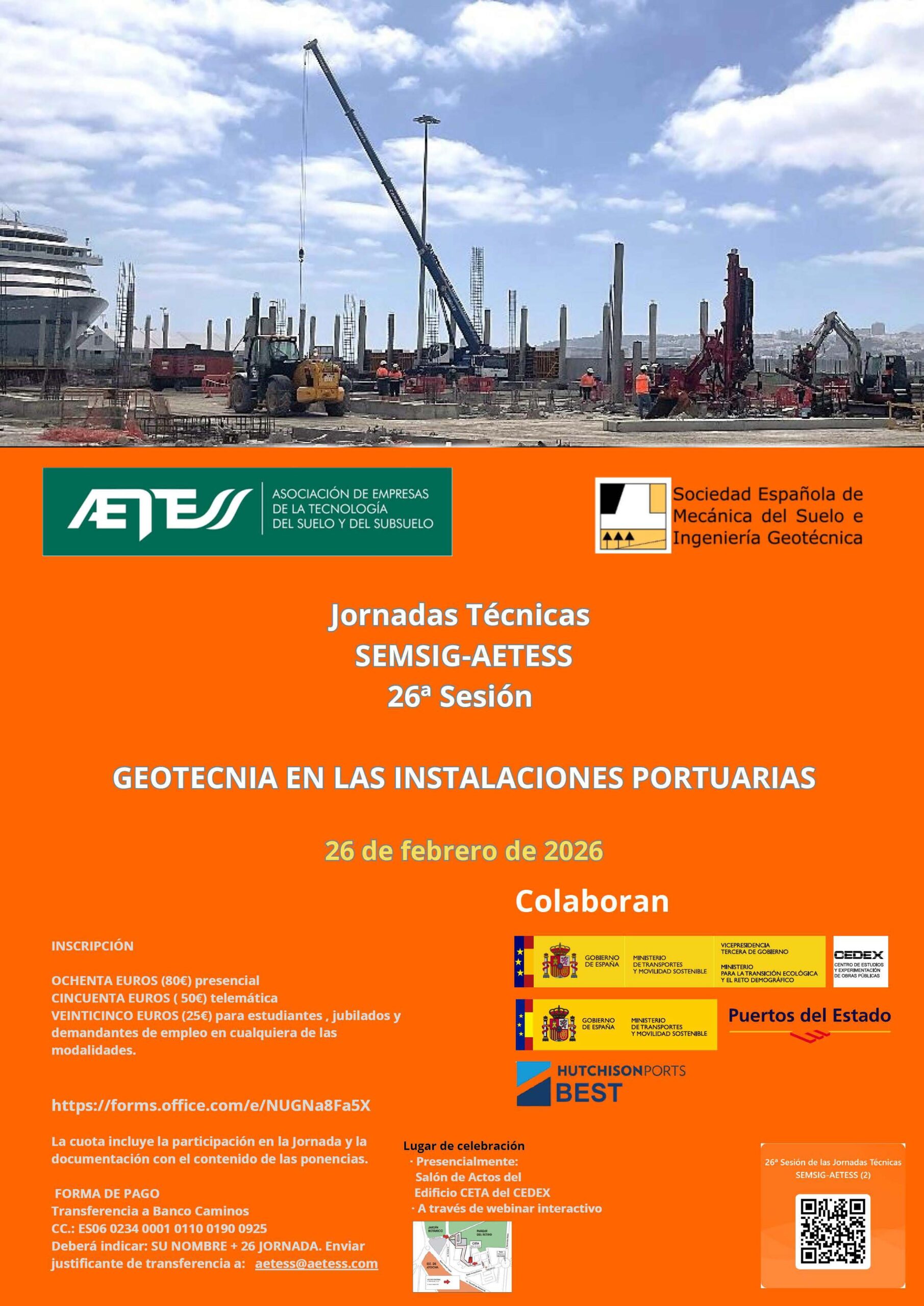 El próximo día 26 de febrero se celebrará la 26ª Jornada SEMSIG-AETESS sobre «Geotecnia en las Instalaciones Portuarias» en formato presencial y telemático. El programa